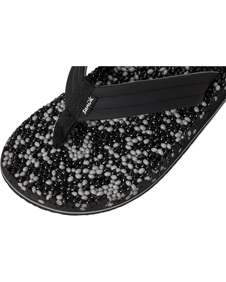 - Whether you’re at the beach or by the pool, the Sanuk® Bubblecush provides a playful yet practical footwear option. Featuring a quick-drying, water-friendly synthetic upper strap, these flip flops are designed to withstand all your water adventures. The highlight is the multicolored ETPU footbed, which boasts a squishy, bead-like texture and appearance, ensuring both comfort and style.
