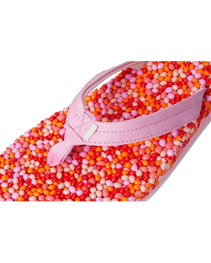 - Made of a quick-drying and water-friendly faux leather upper, the Sanuk® Bubblecush slippers are the perfect choice for your beach trips and vacations. The fun rubber footbed is multicolored and has a squishy bead like texture and appearance while the 100% recycled jersey lining provides added comfort.