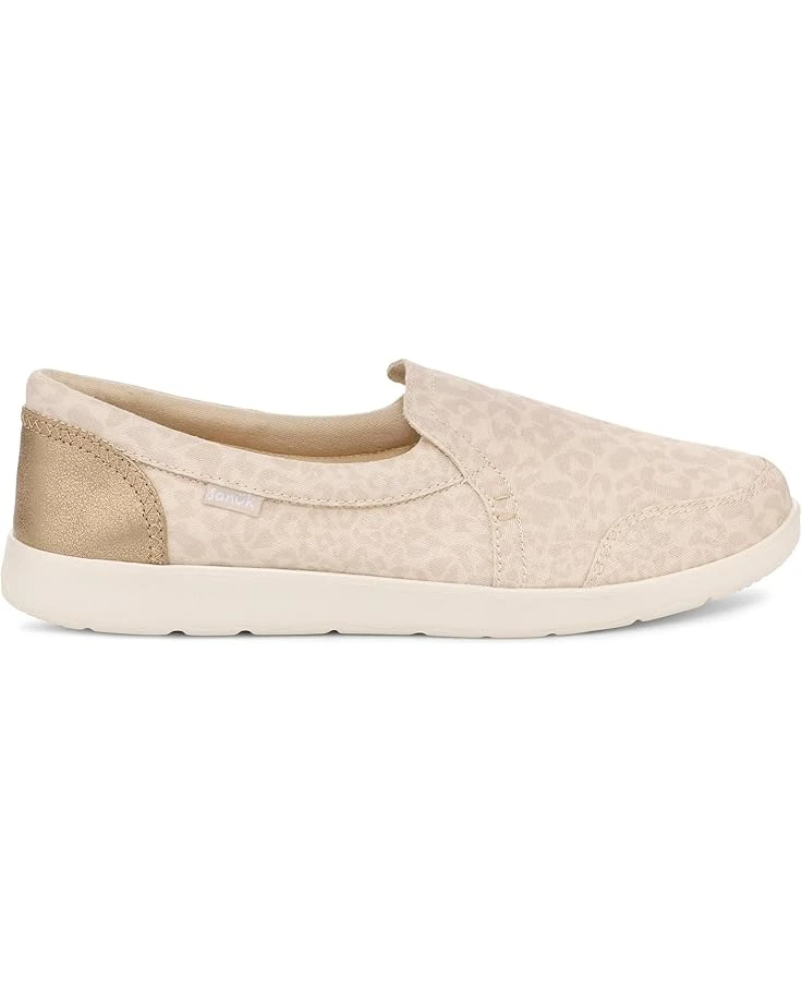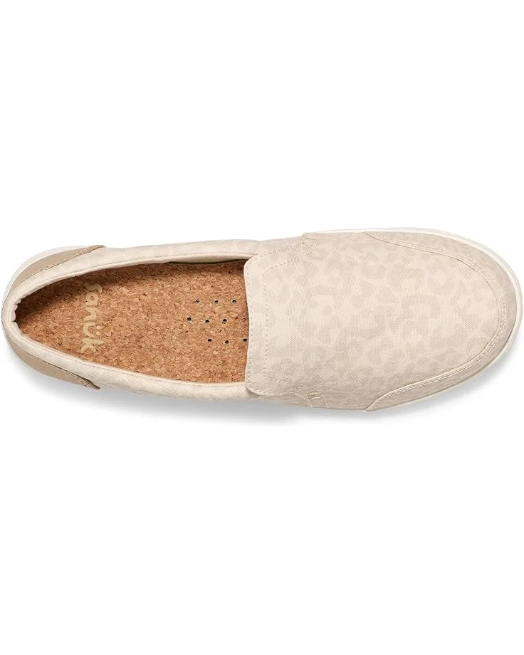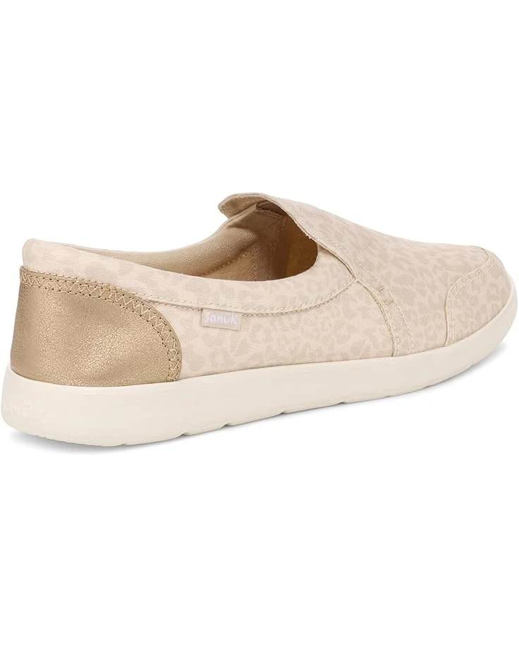 - Embrace those lazy days with lasting comfort in the Sanuk® Hangout Lite Glam shoes. These slip-on style shoes offer a cotton canvas upper with leopard print, cotton lining, and an anatomically molded, cork lined, removable ethylene vinyl acetate insole with Poron heel pad for all day comfort with or without socks.
