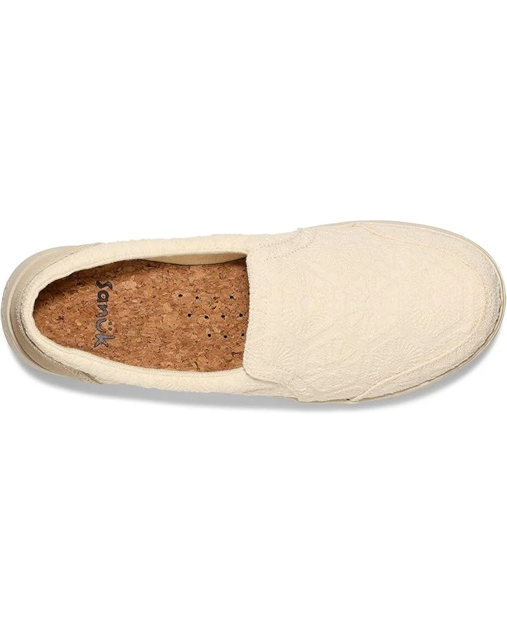 - Get ready to enjoy a casual walk around the town wearing Sanuk® Hangout Lite Hex footwear. Made of polyester knit textile with suede heel counter, the shoes have soft hemp lining, and cork lined removable EVA insole with poron heel pad. A slide-on style, round toe, and comfortable fit make the shoes ideal for casual wear.