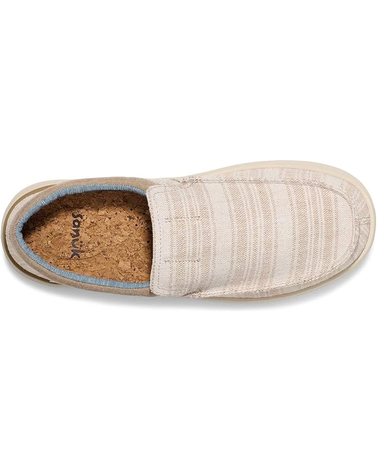 - Move into a world of laid-back comfort with Sanuk® Hangout Lite Stripe, where every stride feels like a vacation. Crafted from a cozy cotton, linen, and polyester blend lining, these slip-ons embrace your feet in a cloud of relaxation. The cork-lined EVA footbed, with a poron heel pad, provides superior support and lasting bliss.