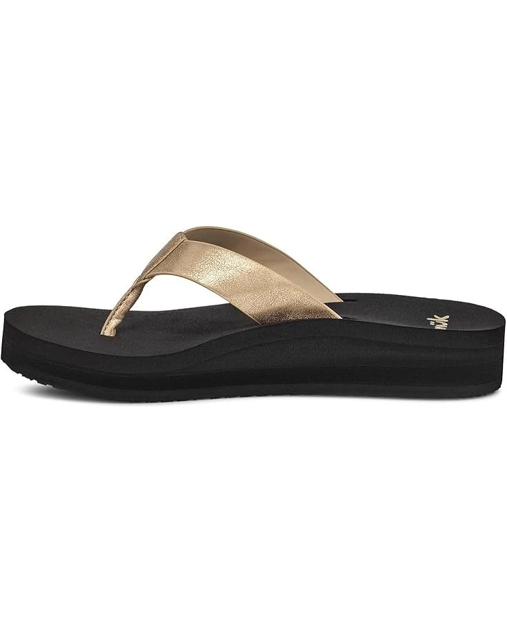 - Stride with a funky yet confident style wearing the Sanuk® Highland Metallic Flip Flops. The slip-on footwear has synthetic leather upper with soft top footbed featuring 20% Bloom™ foam.
