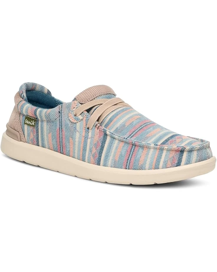 - Step up the style game and accentuate a touch of sophistication wearing Sanuk® Shaka Lite 2 Blanket Loafers that feature a moc toe shape and lace detailing. The loafers come with a multicolored woven cotton blanket, cotton lining, and cork lined removable eva footbed with poron heel pad.