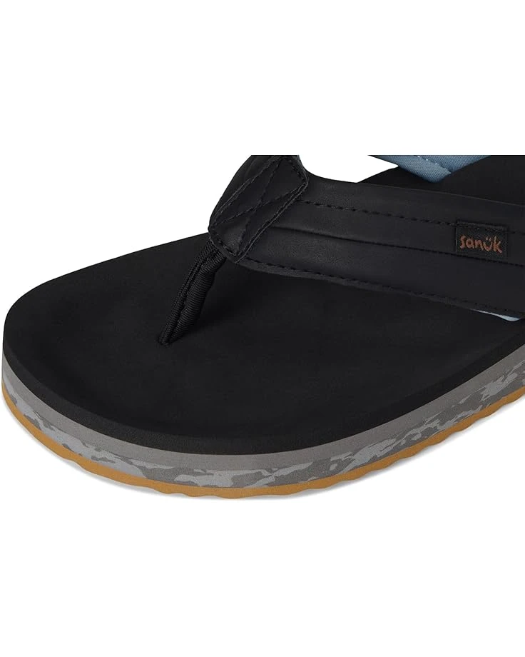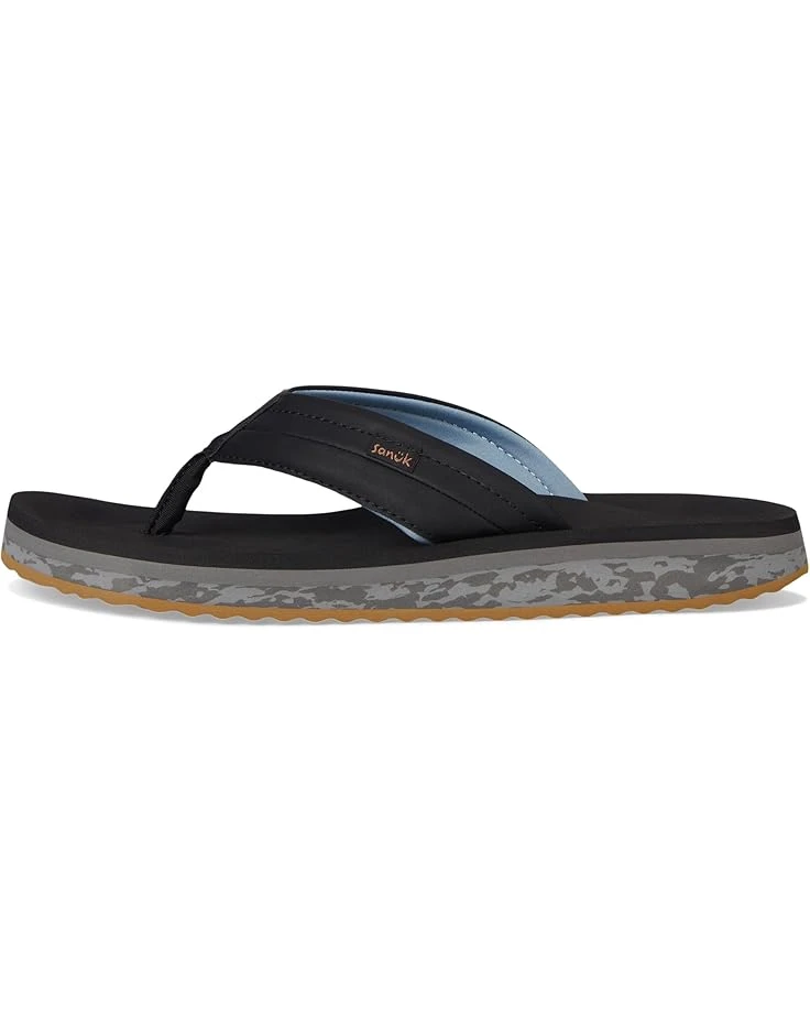 - Sanuk® Tiderush, a brand new style featuring a water friendly synthetic leather upper strap, jersey lining on a water friendly EVA foam footbed with contouring to cradle your foot. Crafted from faux leather upper, Jersey lining made with GRS certified recycled polyester, and EVA insole, this pair of footwear features open round toe, padded toe post, and slip-on style. Midsole has elevated stack height for extra comfort.