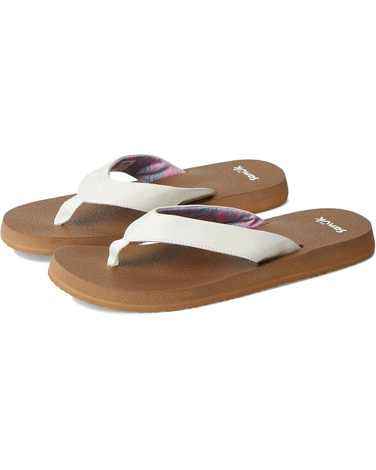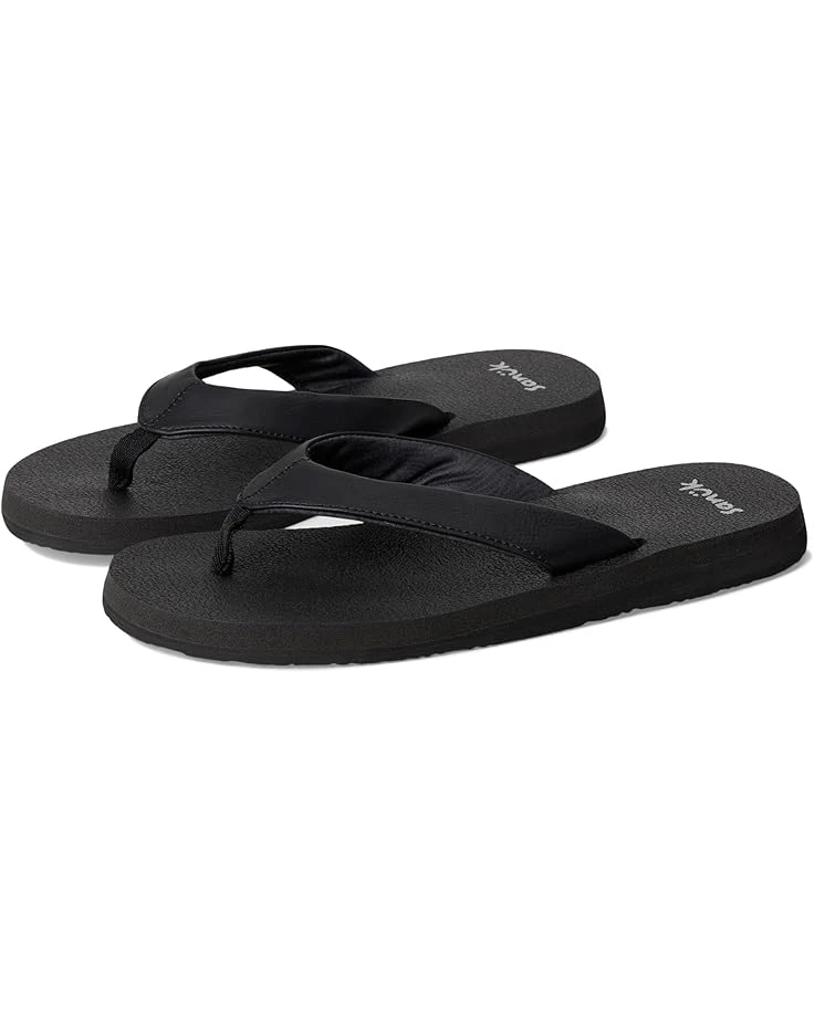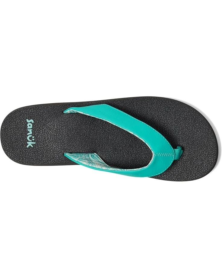 - Introducing the Sanuk® Yoga Mat II slippers, designed to bring a smile to your face with every step. This slip-on footwear features a printed jersey lining that adds a touch of style, combined with the original memory foam Yoga Mat footbed that molds to your foot for unparalleled comfort. The custom Happy U wave tread sponge rubber outsole, made with 53% recycled material, provides excellent traction.