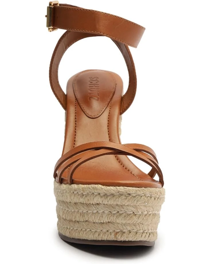 - Set out on a stylish soirée experience wearing the Schutz® Alexandra. Crafted from luxurious leather upper, these platform sandals feature a raffia-inspired design that exudes elegance. The ankle buckle strap ensures a secure fit, while the open toe silhouette with an on-strap design adds a touch of sophistication. With a leather lining and outsole, paired with a foam insole for cushioned support, these sandals redefine style with every step.