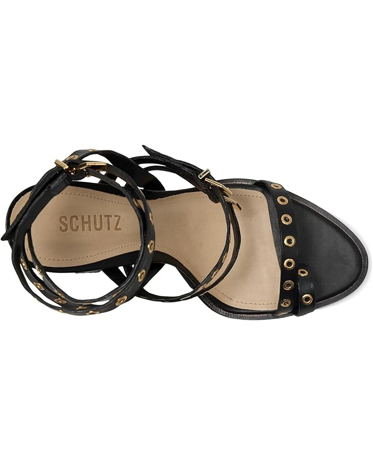 - The Schutz® Annete High is a high-block leather sandal with embellished straps and buckle adjustability features. An open, almond toe shape defines the sleek look of this footwear.