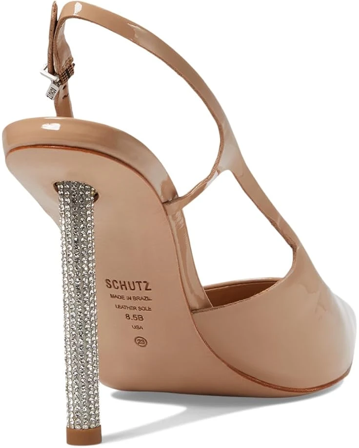 - Leave everyone in awe at the party wearing the Schutz® Boris Pin Heel. This pair of heels features pointed toe design, brand name embossed on the footbed, and stone detailing on the heel, making you look quirky and shiny.