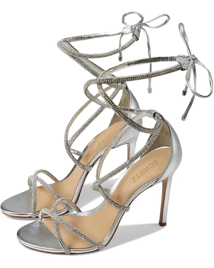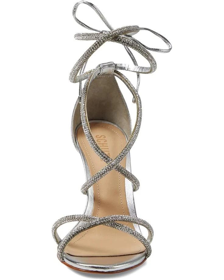 - Make your next event appreciably special wearing the Schutz® Carley Sandals. This high-stiletto heel pair has a round open toe silhouette and crystal-embellished upper straps that follow a wrap-around tie closure.
