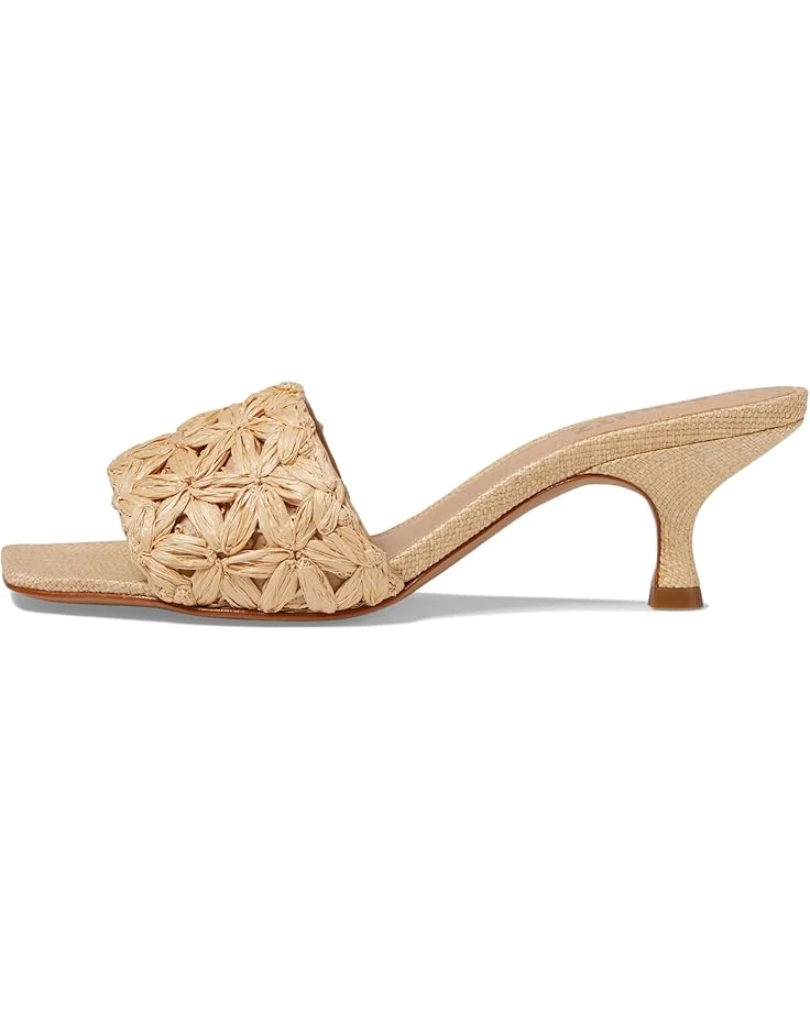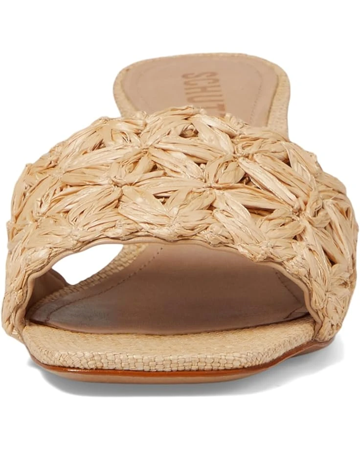 - Stroll with the natural and aesthetic charm of Schutz® Dethalia Straw Sandals. The slip-on footwear features synthetic straw upper construction with mid-stiletto heels and open square toe silhouette.