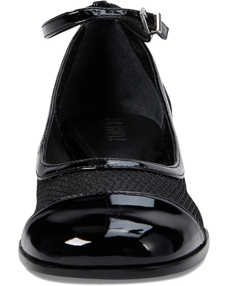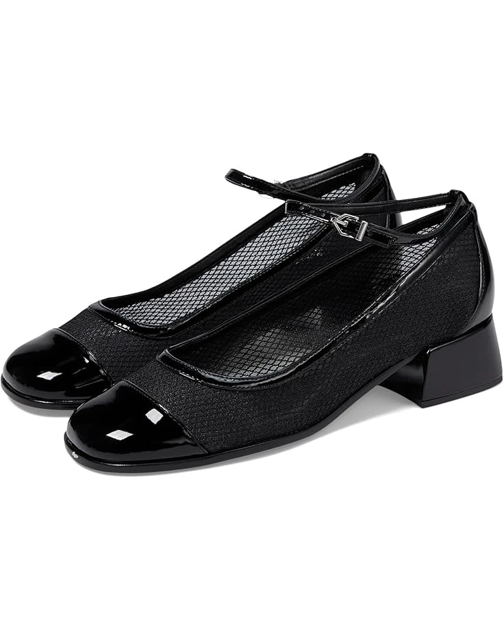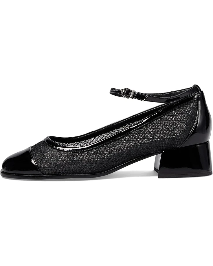 - Pull on the perfect party look wearing the Schutz® Dorothy Mesh. Crafted from patent leather upper, this pair of Mary-Jane silhouette sandals features low-block heel with rubber patch, round toe design, and buckled closure for easy on and off.
