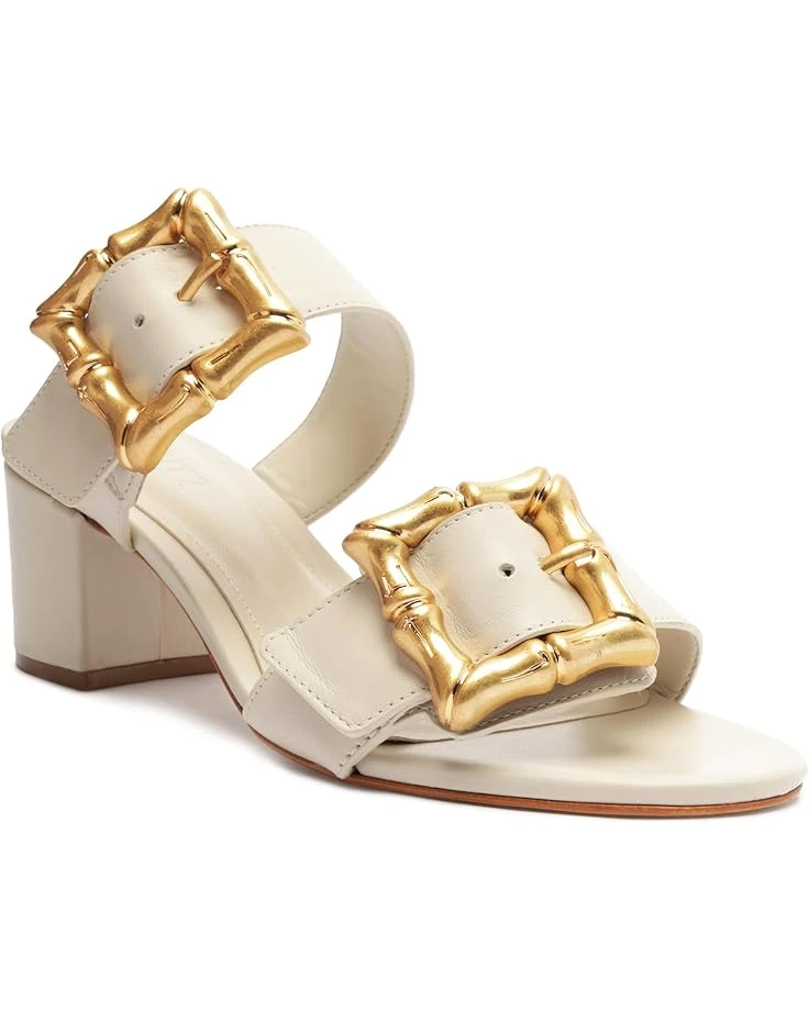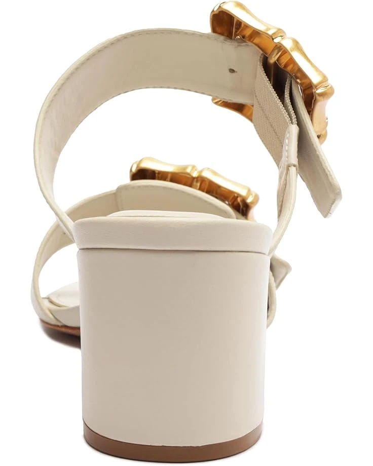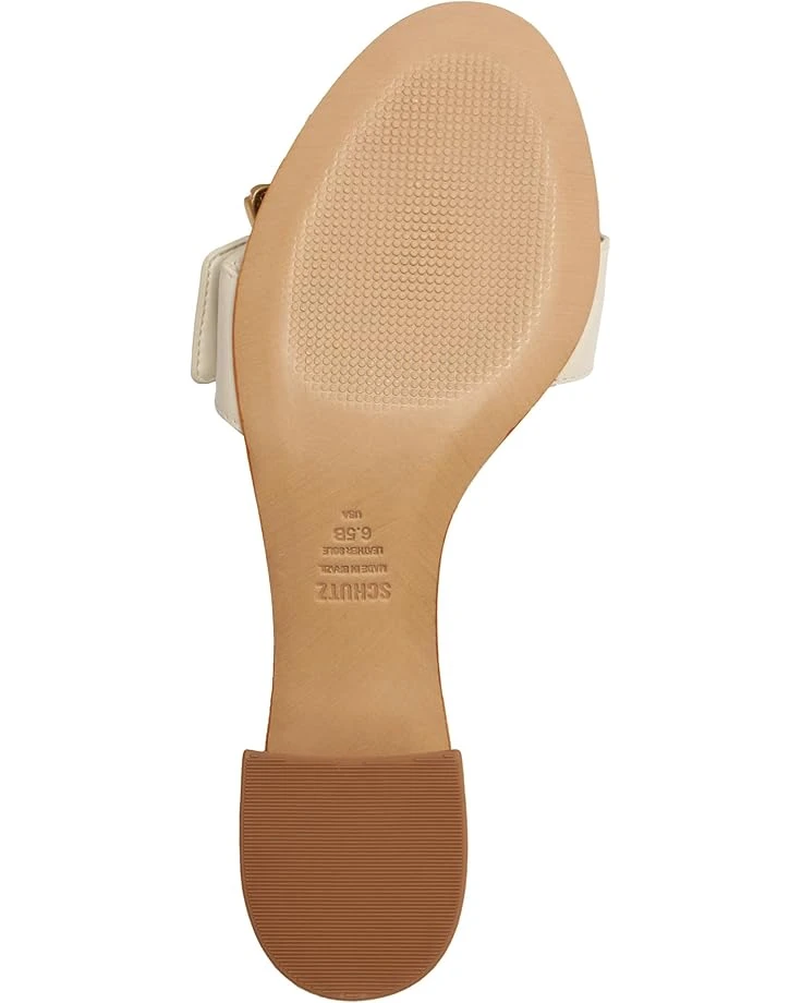 - Showcase your definition of classic cool wearing the Schutz® Enola Mid Block Sandals. The slip-on footwear features leather upper straps with large decorative buckles, synthetic lining, and foam insole.