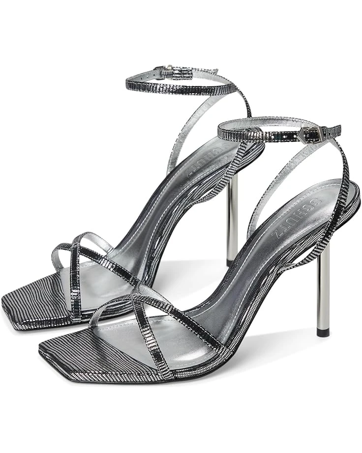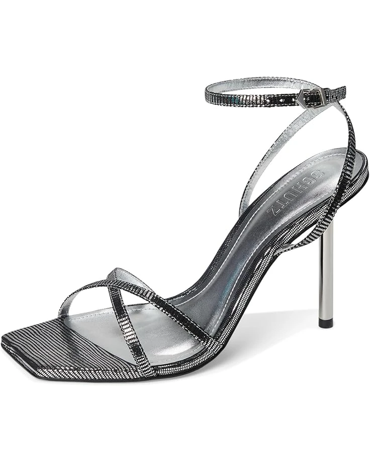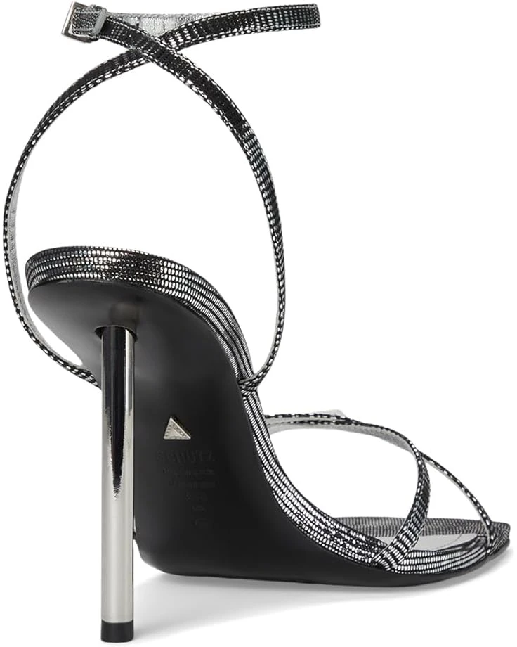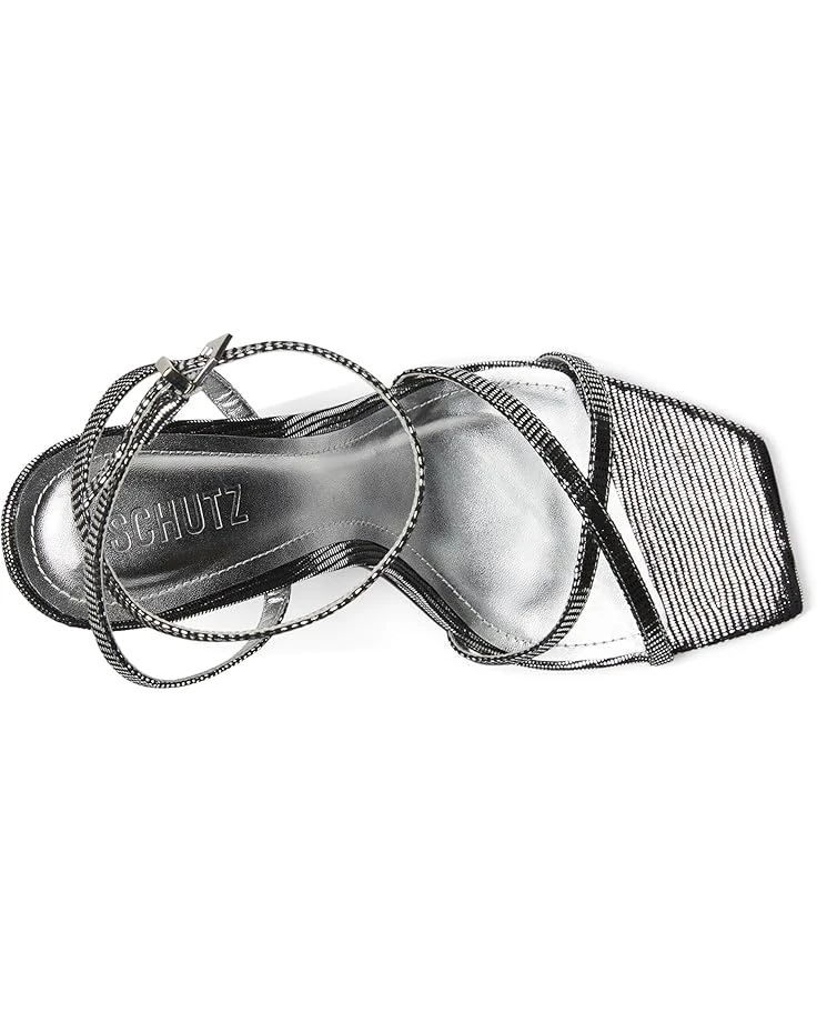 - Made in metallic leather, the Schutz® Eva sandals are an ideal choice to make a fashionable entry into any party or event. These heeled sandals come with a foam insole and synthetic lining that make them comfortable to wear for long hours. The ankle strap with an adjustable buckle closure offers a perfect fit. From cocktail dresses to chic gowns, these designer sandals are perfect to style up your outfits.