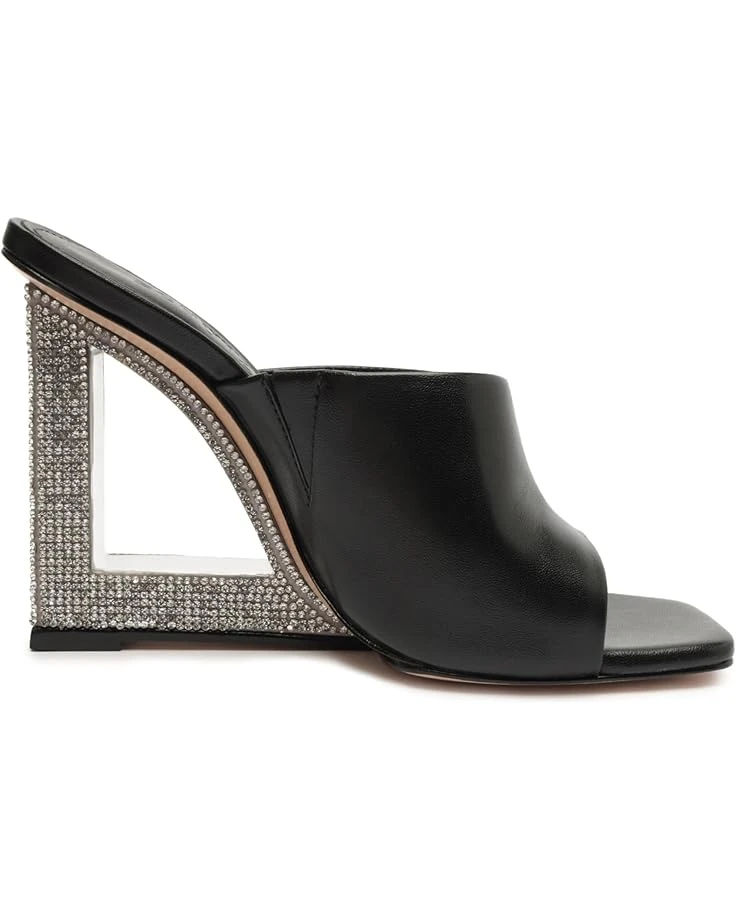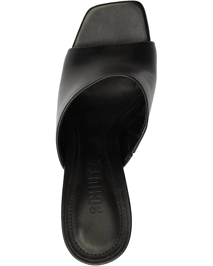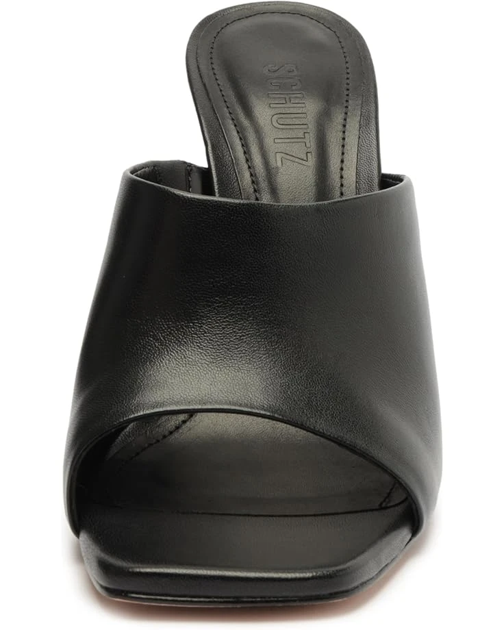 - Be the talk of the town wearing the attractive Schutz® Filipa Mule Glam. Crafted from leather upper, this pair of slip-on heels features square toe design, architectural wedge heel with crystals embedded allover the heel, and brand detailing on the footbed.