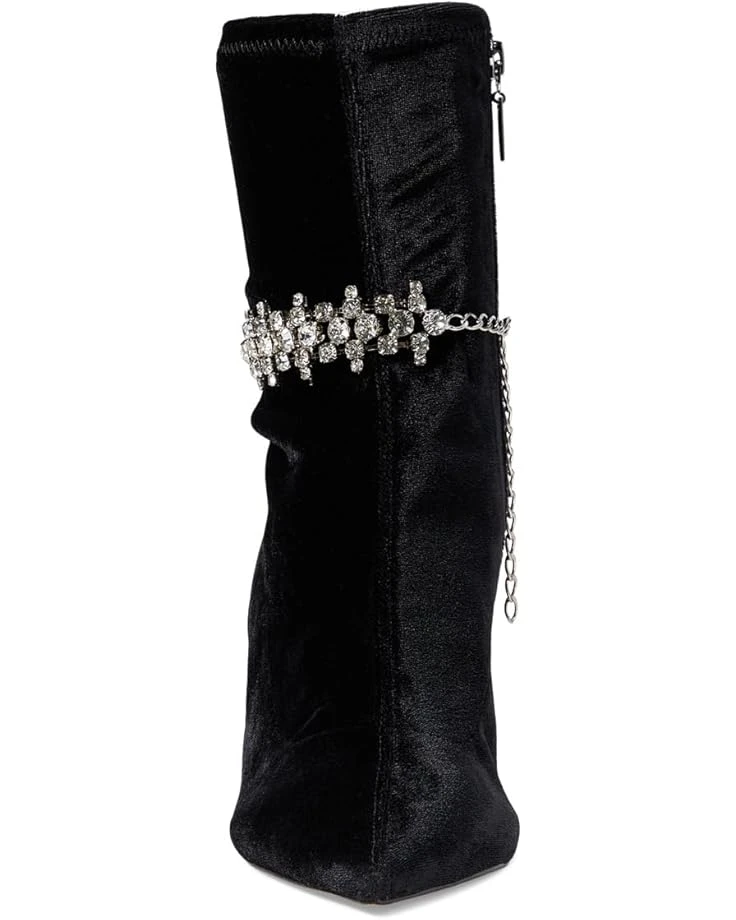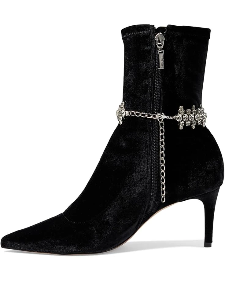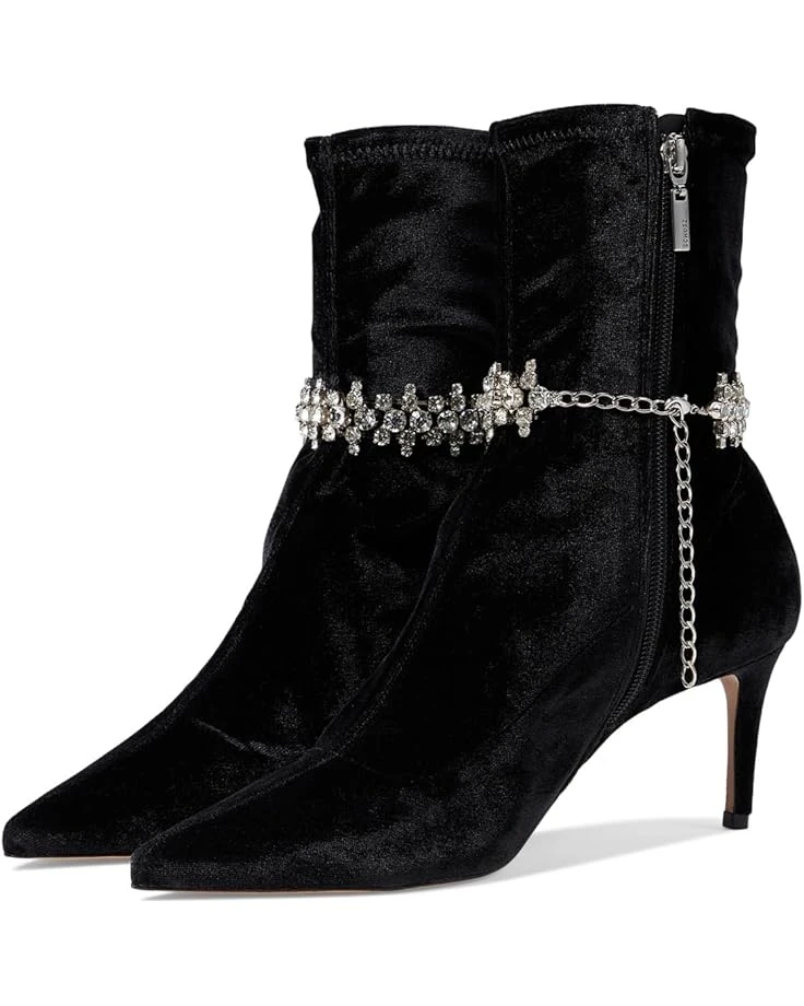 - Give your fashion statement a chic update with the classy Schutz® Marion Mid stiletto velvet bootie and stiletto heel. These feature a pointed toe shape, low-top ankle height, decorative detailing on the ankle, and a side zipper closure.