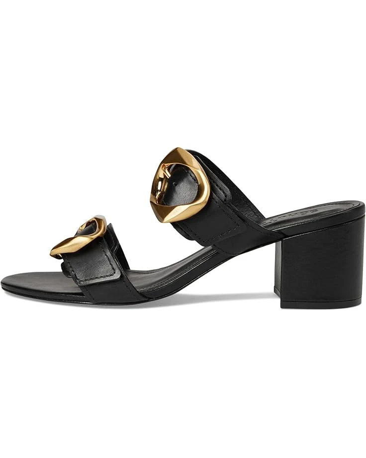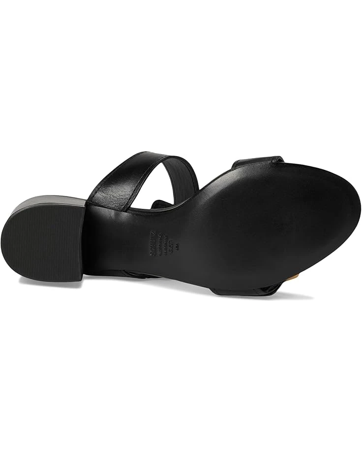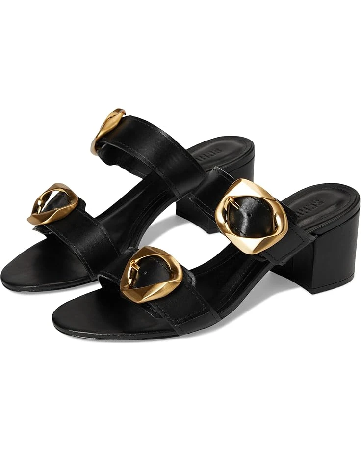- Stun everyone with your stylish look by complementing outfits with the Schutz® Olga Sandals. The open-toe sandals are designed with a leather upper, leather lining, and a comfortable foam insole. The dual wide straps with decorative golden buckles and mid-block heel detail elevate the look.