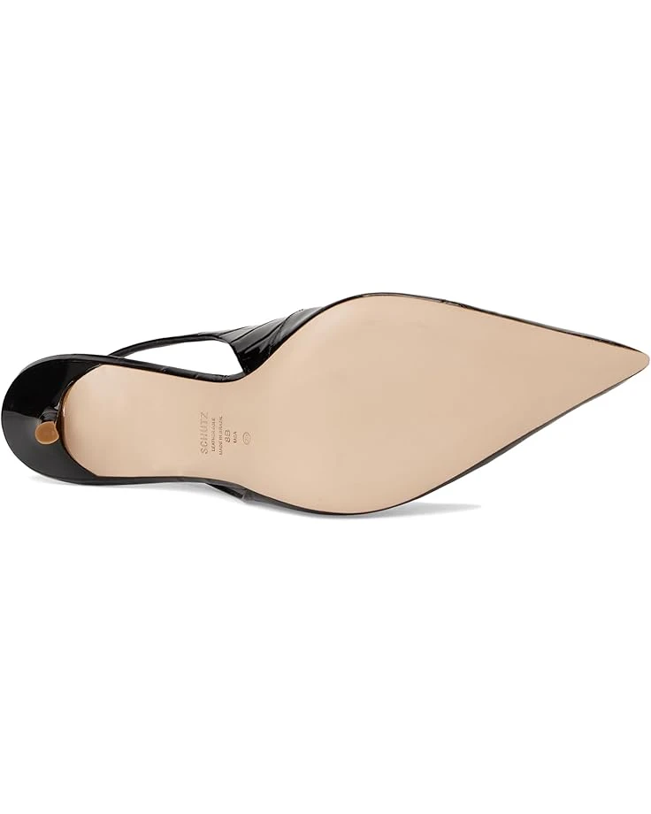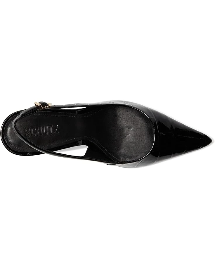 - Step into style wearing the Schutz® Paola heels. Made with trendy croc-embossed leather upper and featuring fierce pointed toes, these stiletto heels are perfect for any fashion-forward individual. The adjustable slingback strap with buckle closure offers a customizable fit, while the leather lining and EVA insole provide added comfort and support.
