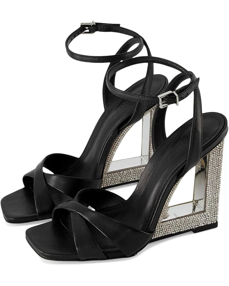 - Captivate your graceful look donning the schutz® Phillie. This pair of sandals are designed with adjustable ankle strap buckle closure, polyvinyl chloride lining, and foam insole. The silhouette has wedge heel with stone embellishment for a dazzling touch.