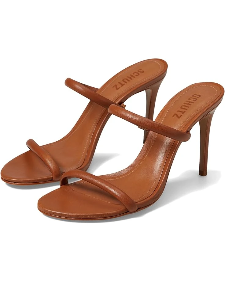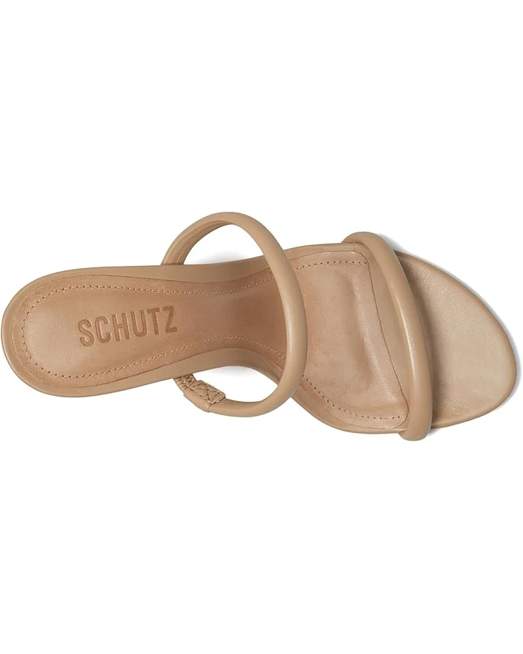 - Get the perfect way to add some glamor and panache to your everyday outfit by choosing the Schutz® Taliah Heeled Sandals. Featuring a dual-strap leather or metallic leather upper, these minimal modern sandals are set atop a high stiletto heel for added height and integrated with a foam-padded insole for a comfortable wear.