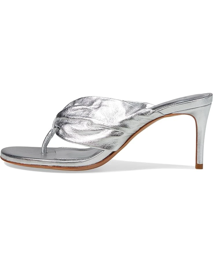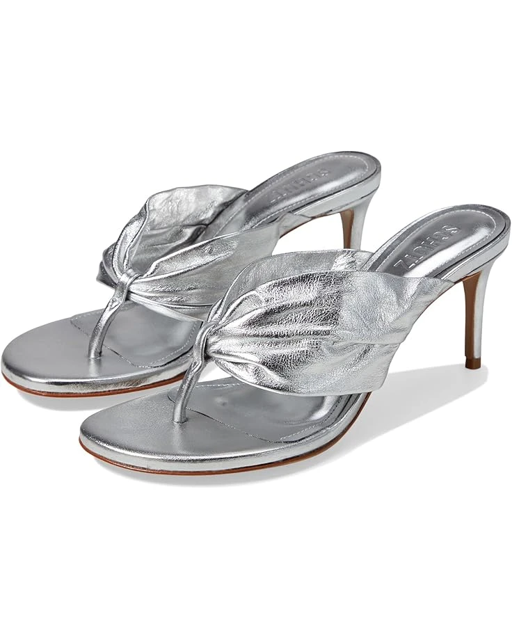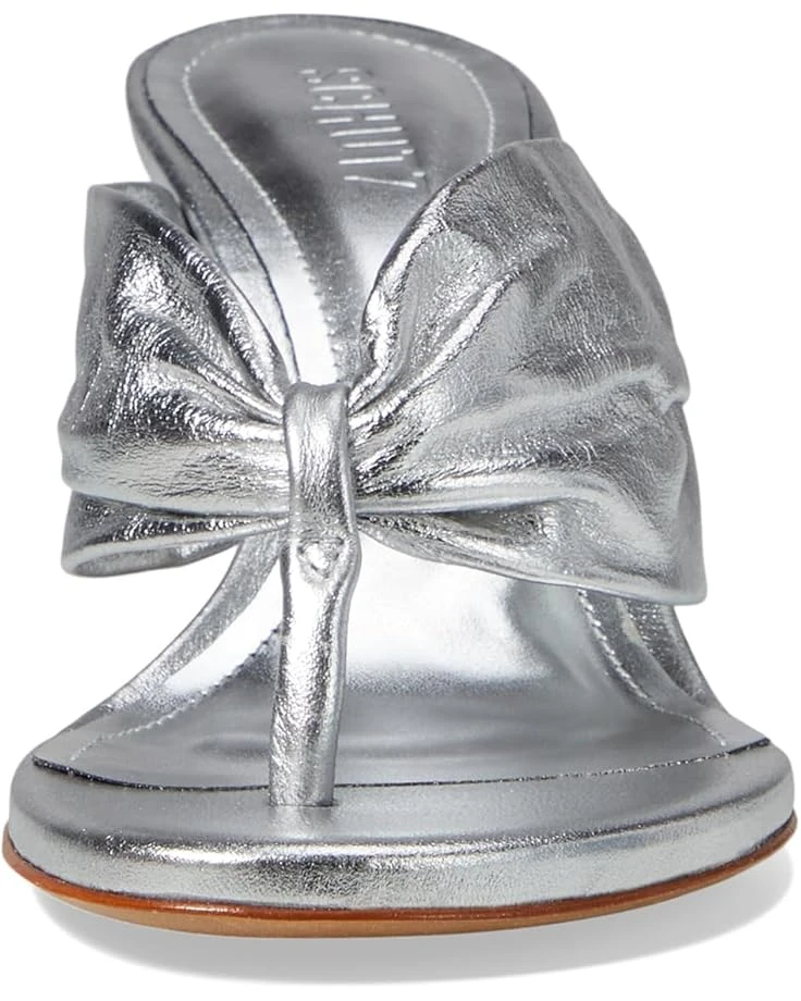 - Amp up your hot style wearing the Schutz® Willow. Crafted from metallic leather upper, leather lining and foam insole, this pair of sandals features V-line strap detailing, slip-on closure, open round toe, stiletto heel and brand detailing on the footbed.